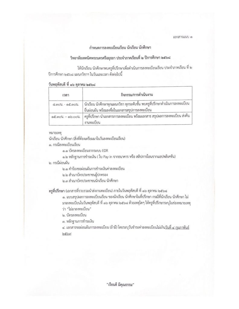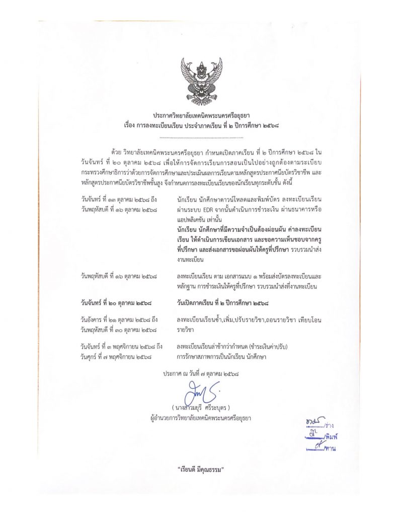 ประกาศเรื่องการลงทะเบียนเรียน ประจำภาคเรียนที่ 2 ปีการศึกษา 2568